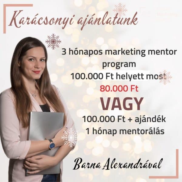 Adj vállalkozásodnak új lendületet és kezeld marketing ügyeidet a legmagasabb szinteken! Legyen egy saját marketing mentorod 3 hónapon át! A mentorod pedig nem más lesz, mint Magyarország első, kifejezetten a szépségipari marketingre szakosodott ügynökségének, a Beauty Marketing Experts-nek az alapítója, és vezetője, Barna Alexandra! A Marketing mentorprogram tartalma: